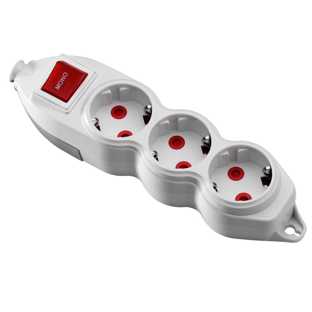 Bloc prize, 3 prize, intrerupator, protectie copii, alb
