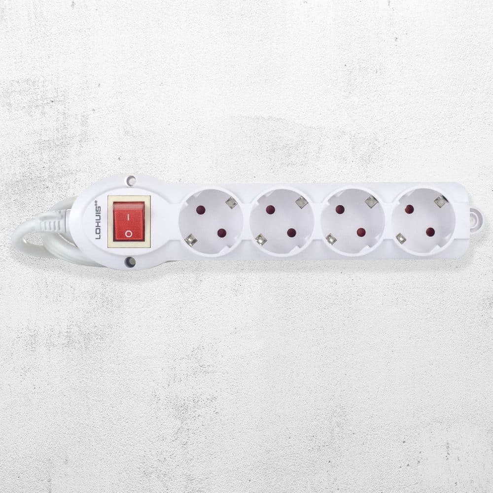 Prelungitor LOHUIS, 4 prize, protecție copii, cu întrerupător, 3×1,5mm², 3 m