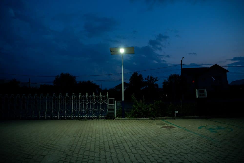 Corp de iluminat stradal cu panou solar detașabil (baterie 12V 48Ah), 80W, 8000lm, lumină rece 6500K, stâlp 4m și accesorii