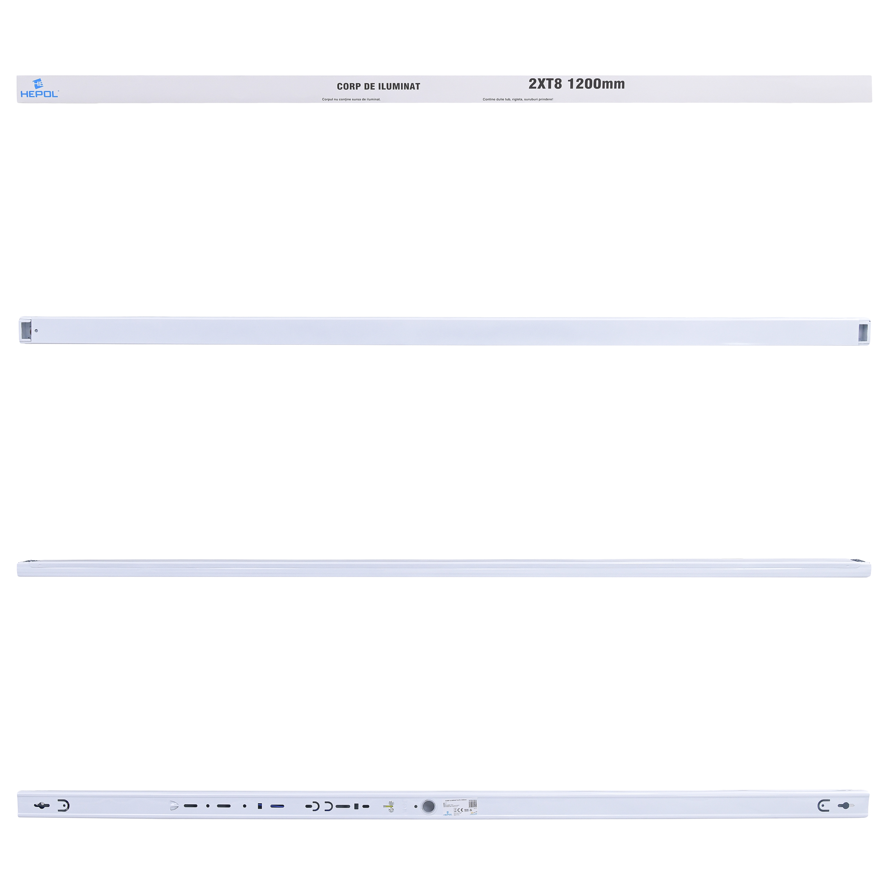 Corp iluminat HEPOL FLY 2xT8, pentru tub LED, IP20, G13, 2x1200mm, alb