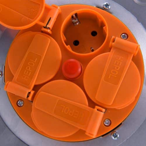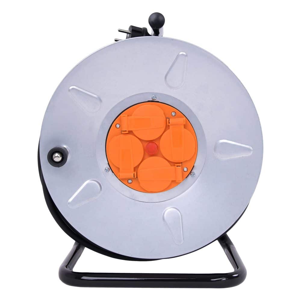 Derulator HEPOL, 4 prize, flanse metalice, 50m, 3×2.5mm²