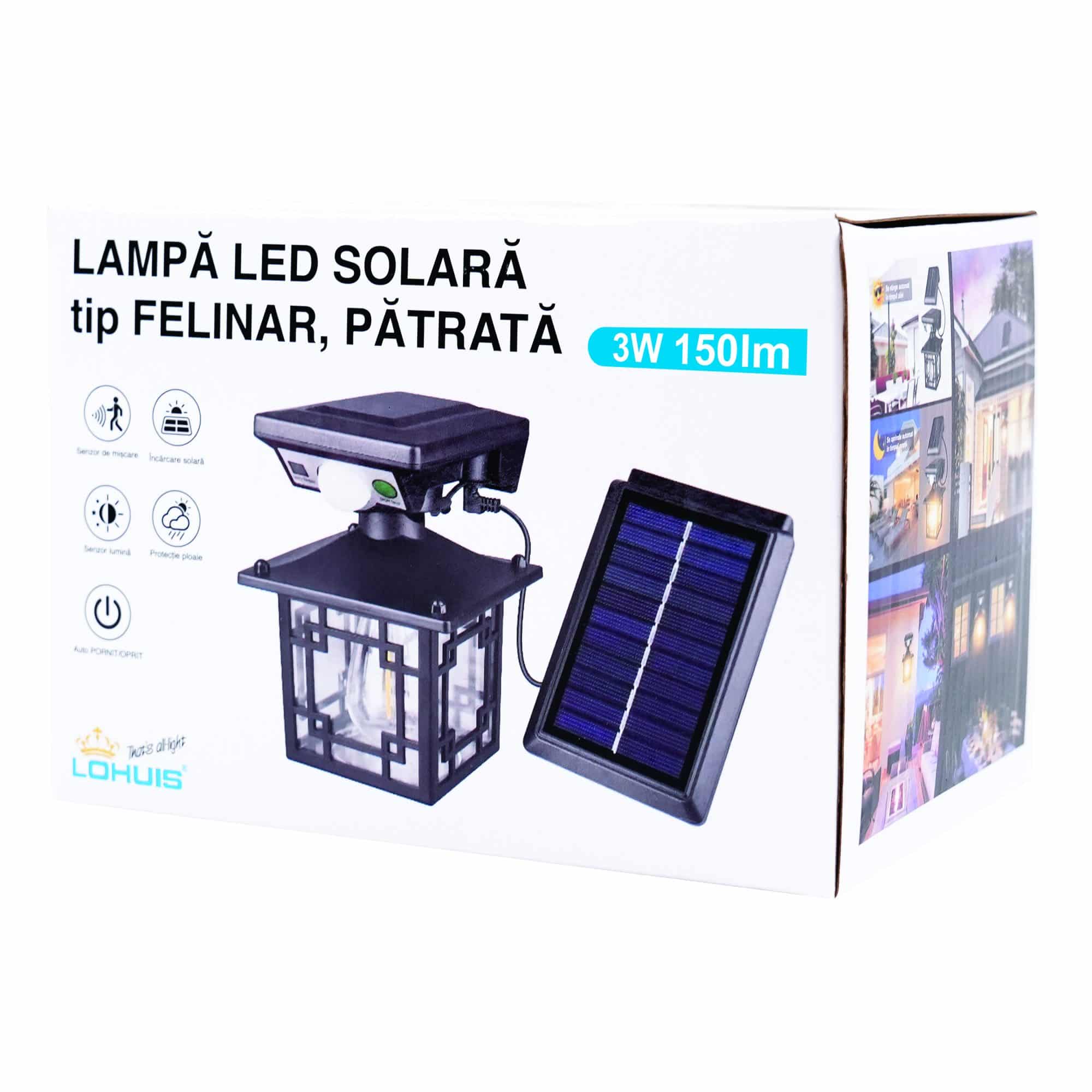 Lampă LED solară tip felinar (pătrată), 3W, 150 lm, IP44, 5000K
