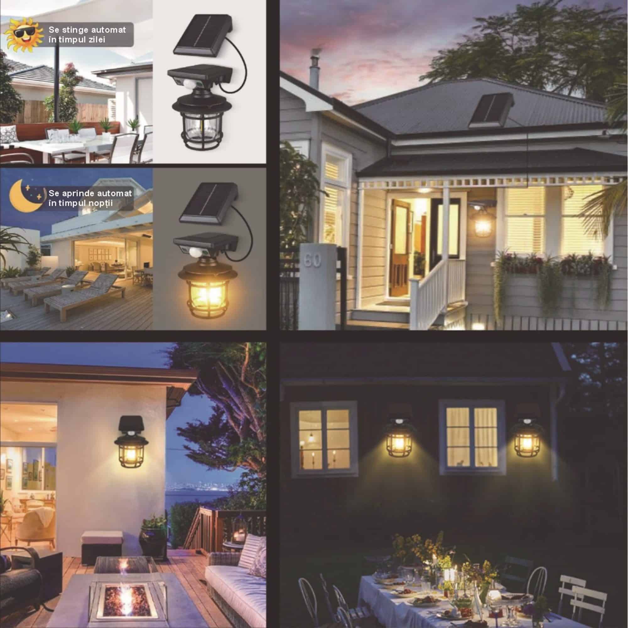 Lampa se aprinde automat noaptea la luminozitate redusă și luminează până în zori.