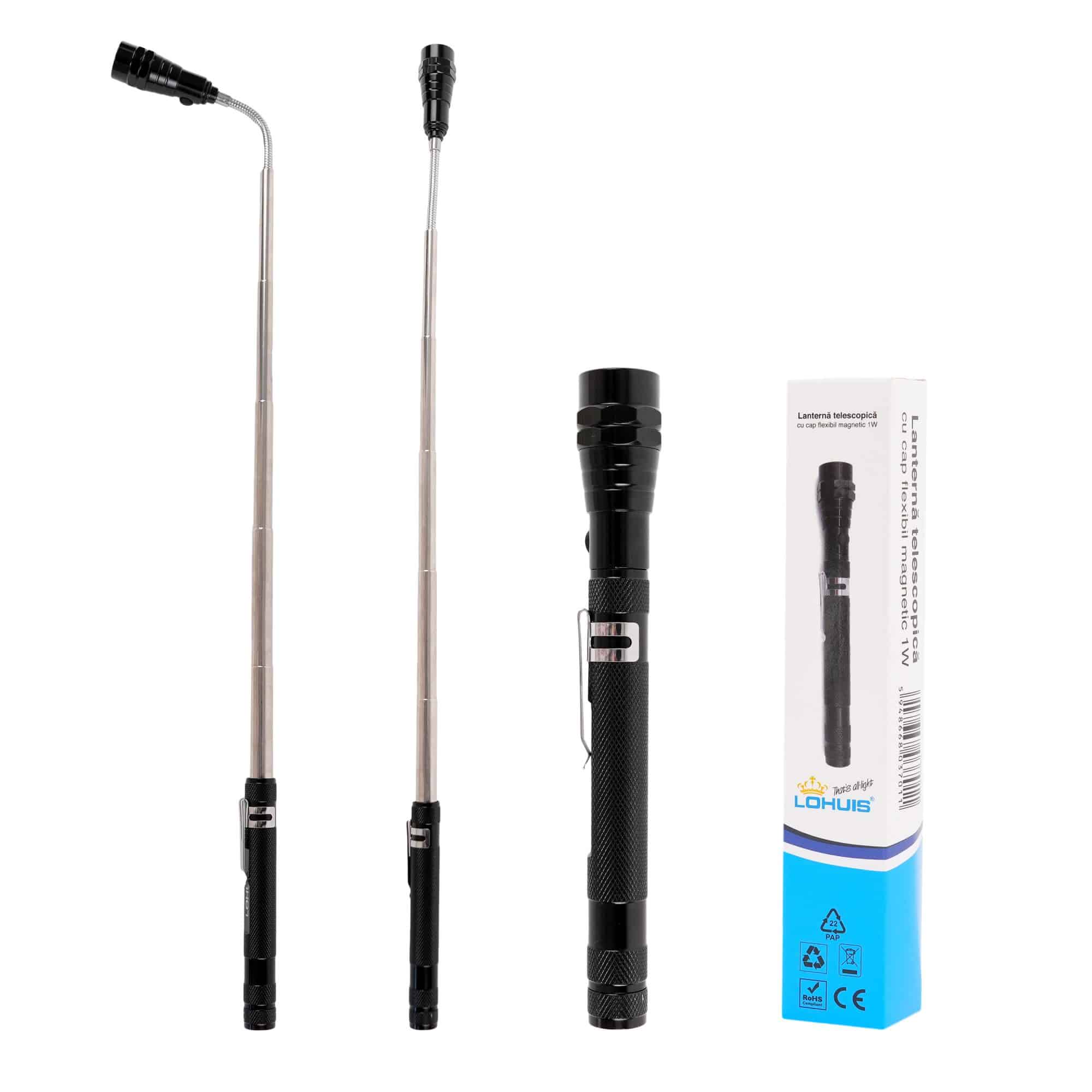 Lanternă telescopică cu cap flexibil magnetic 1W LOHUIS