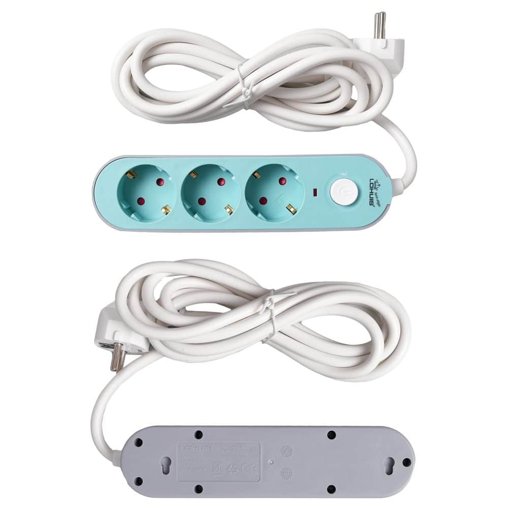 Prelungitor LOHUIS, 3 prize, protecție copii, cu întrerupător, 3×1,5mm², 3 m