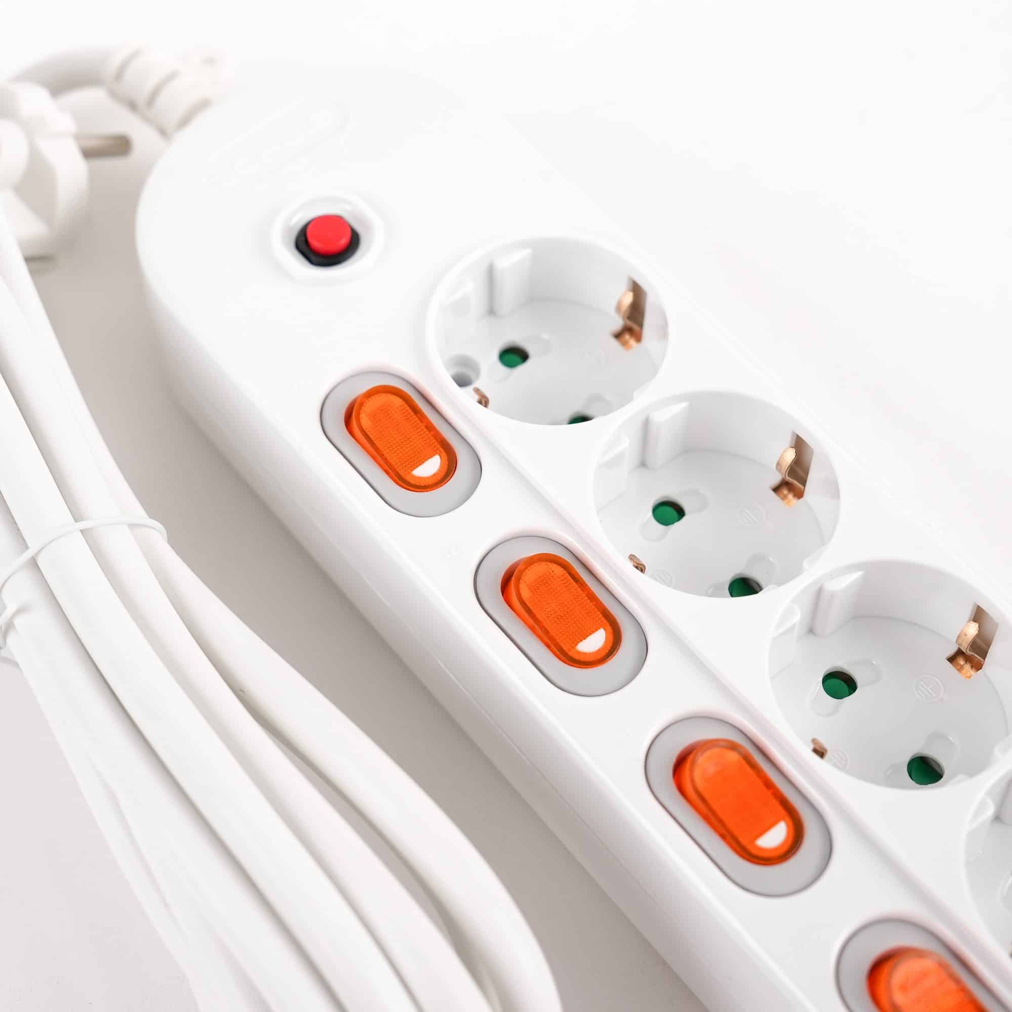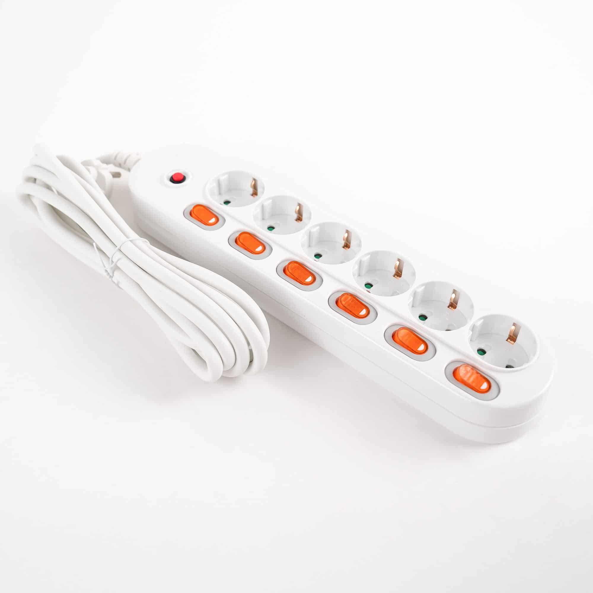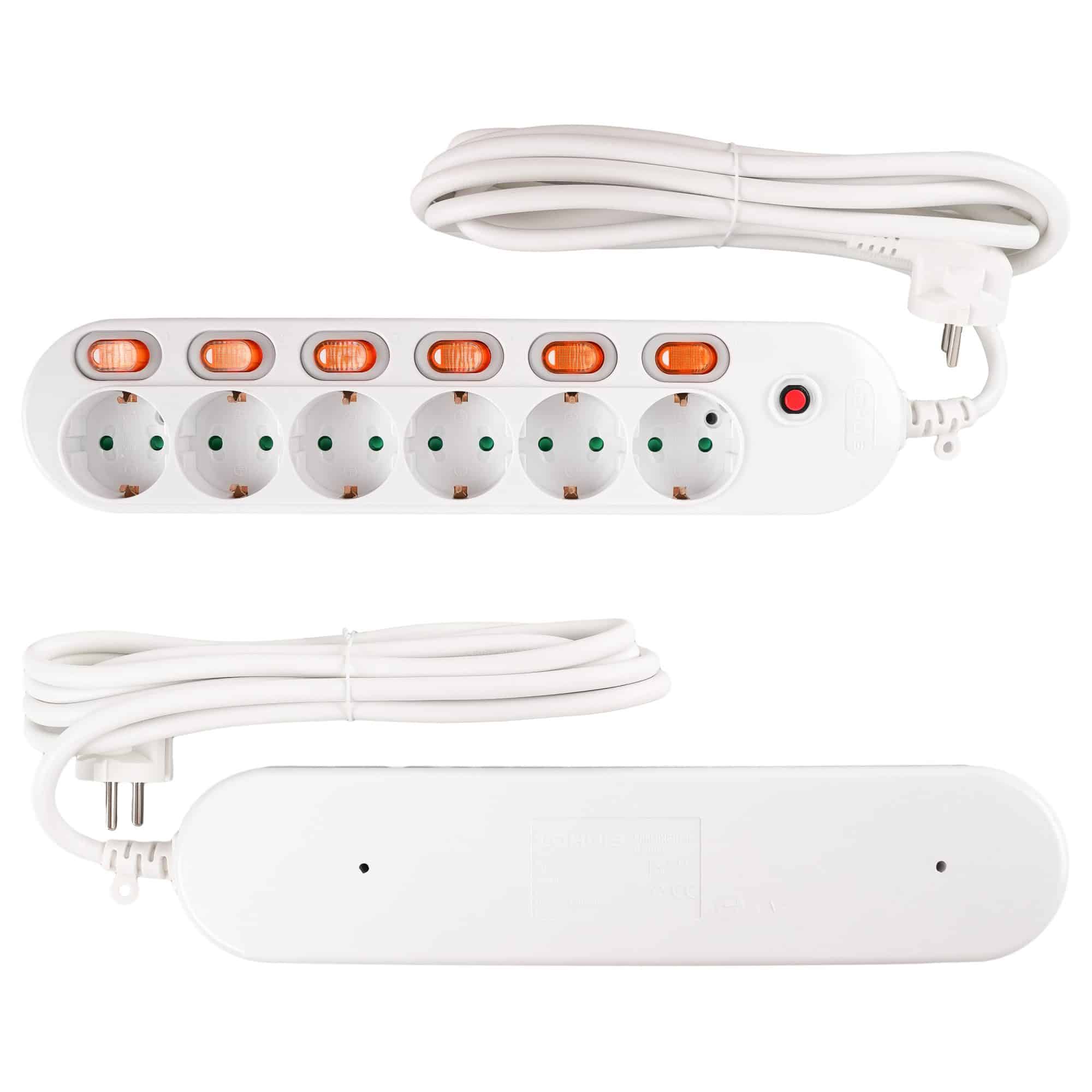 Prelungitor 6 prize, 6 întrerupătoare, 3×1.5mm² (Cu), 3 m