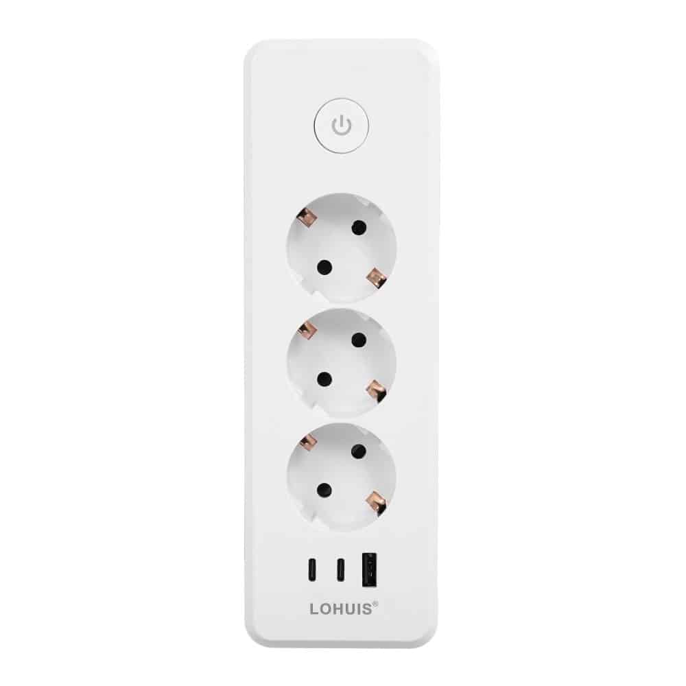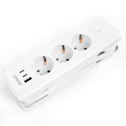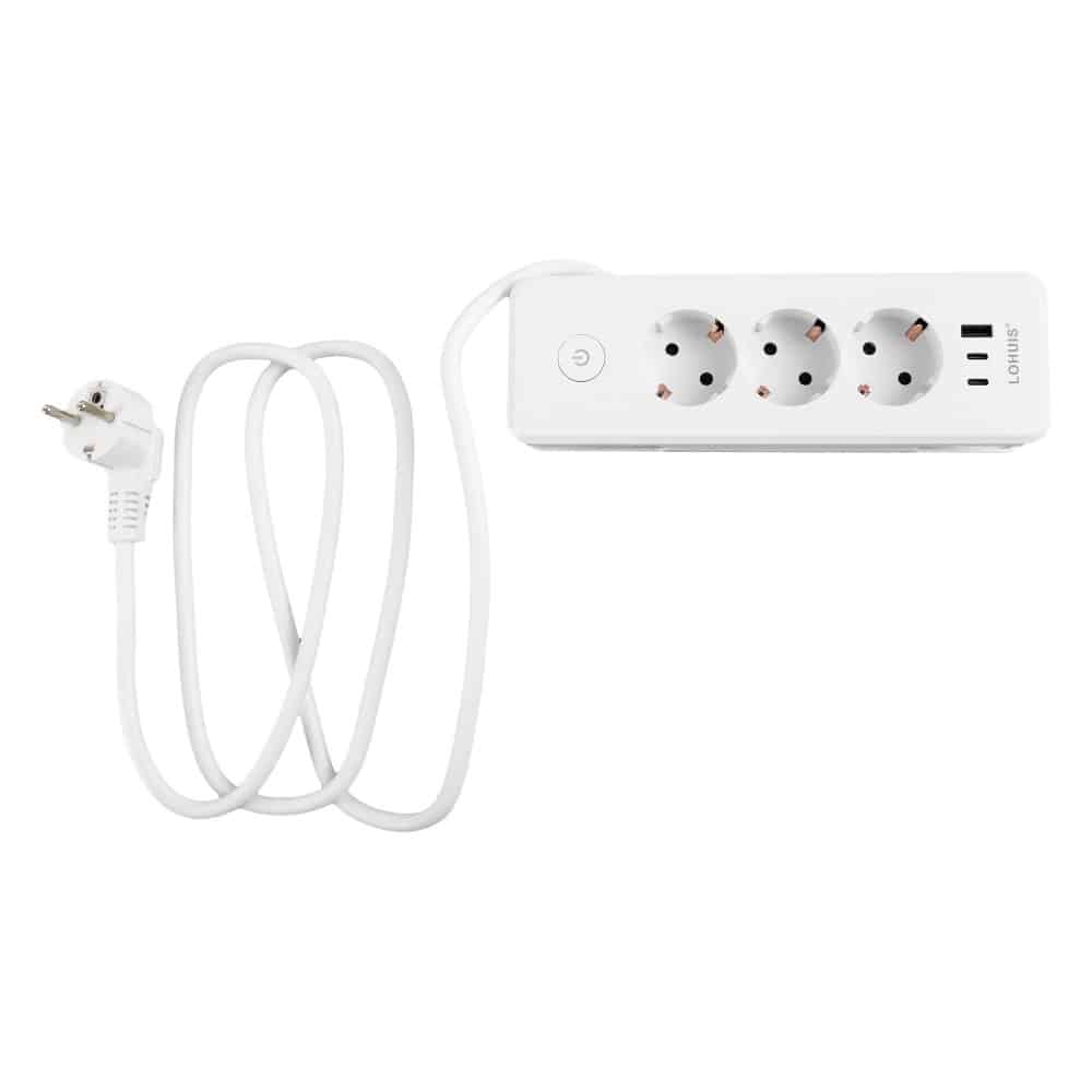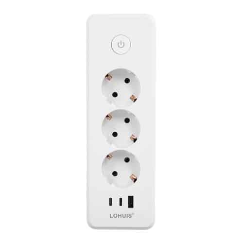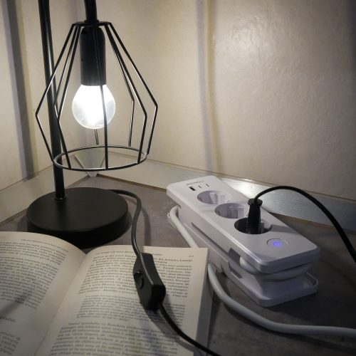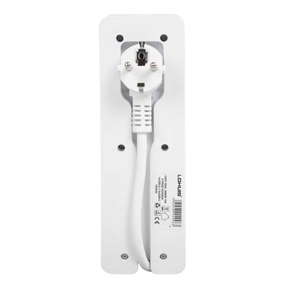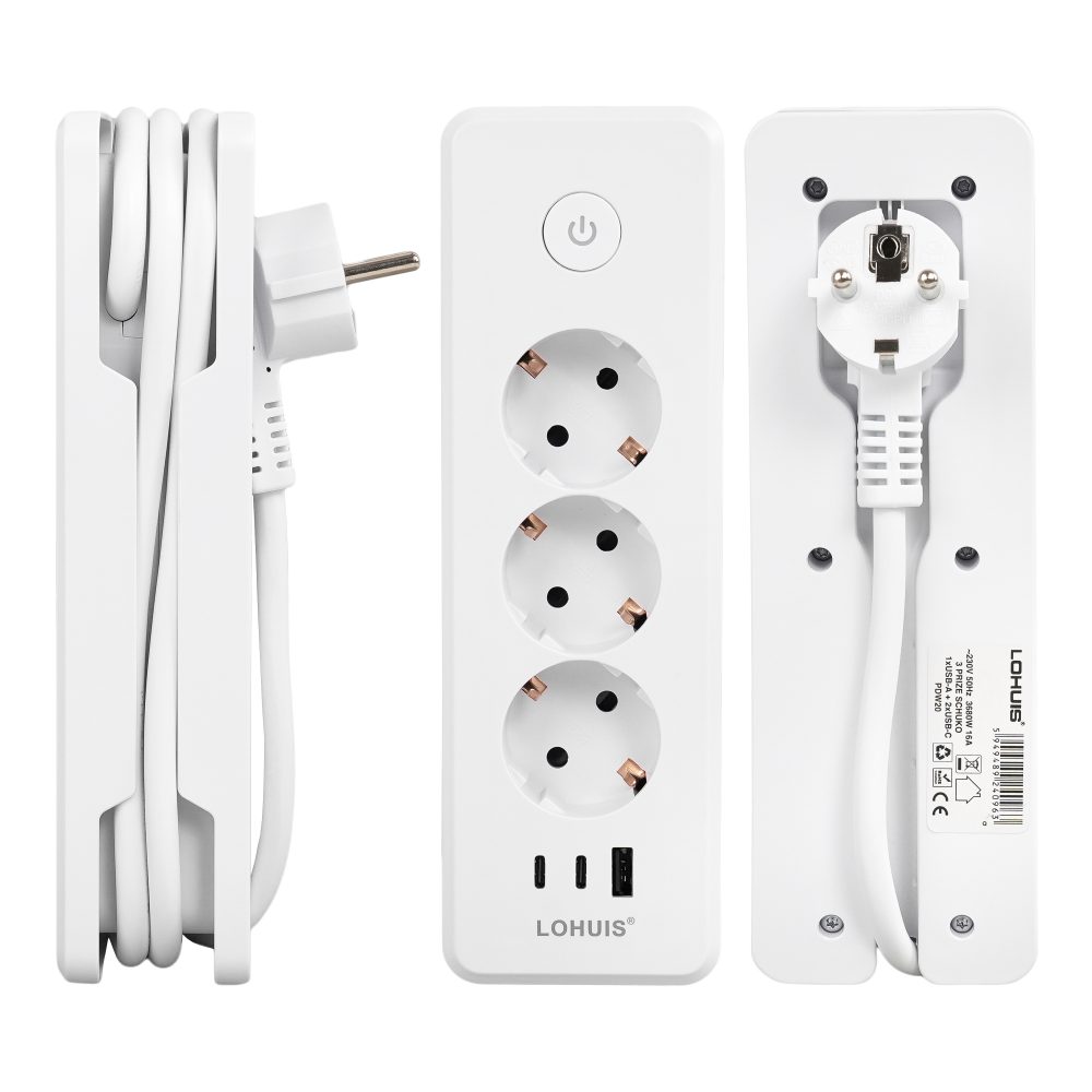 Prelungitor călătorie E30 cu 3 prize, întrerupător luminos, cu încărcare USB PD20W, 1xUSB-A și 2xUSB-C