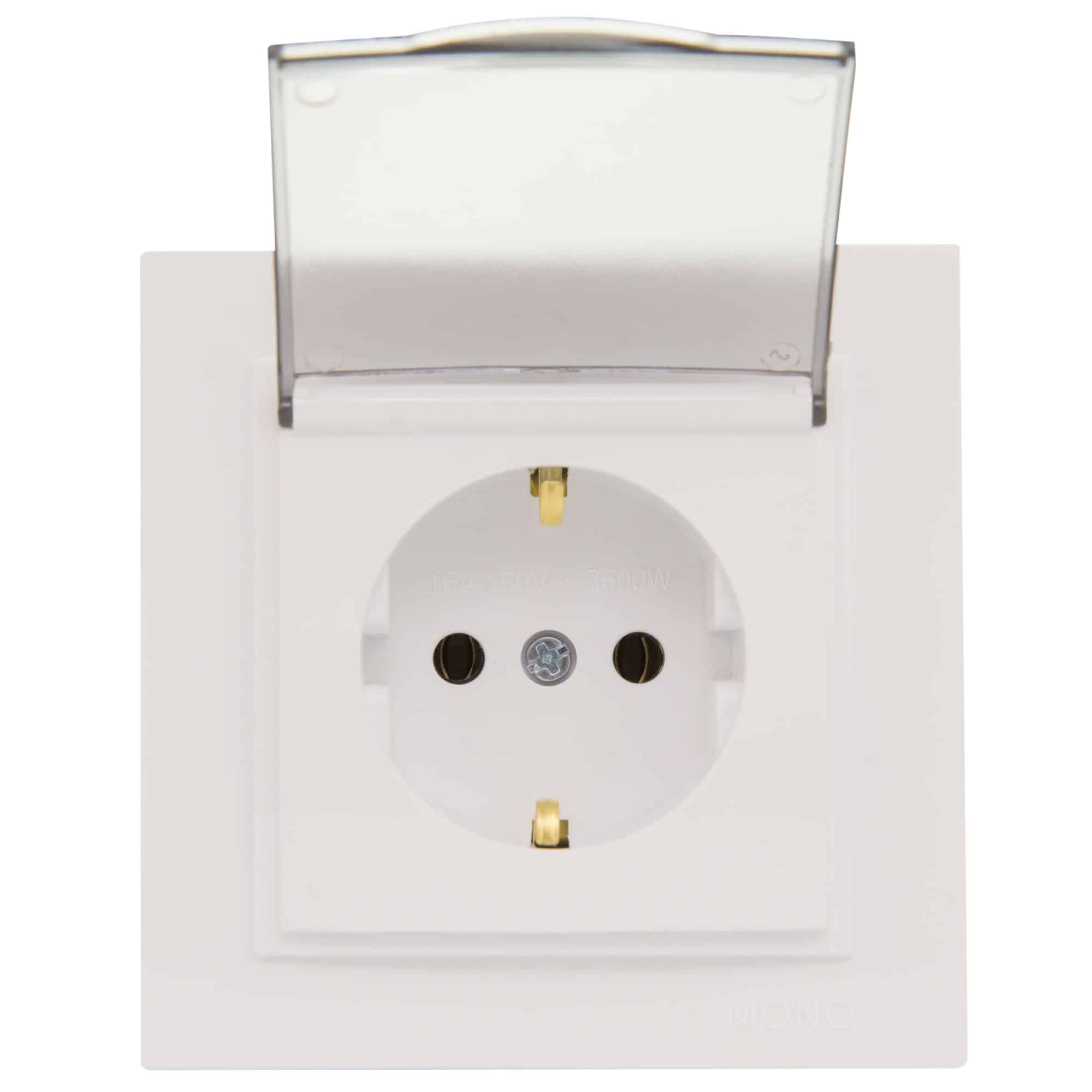 Priza cu CP si capac, DESPINA, ingropat/ST, alb