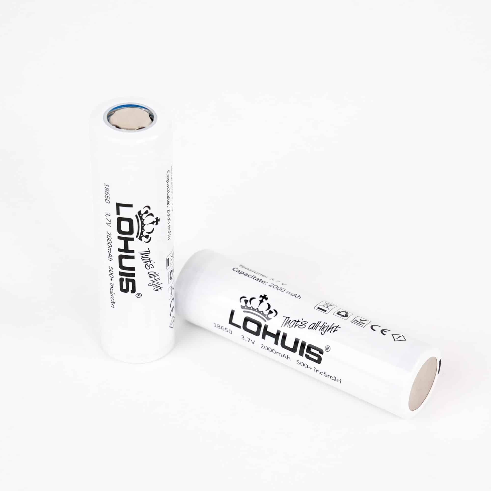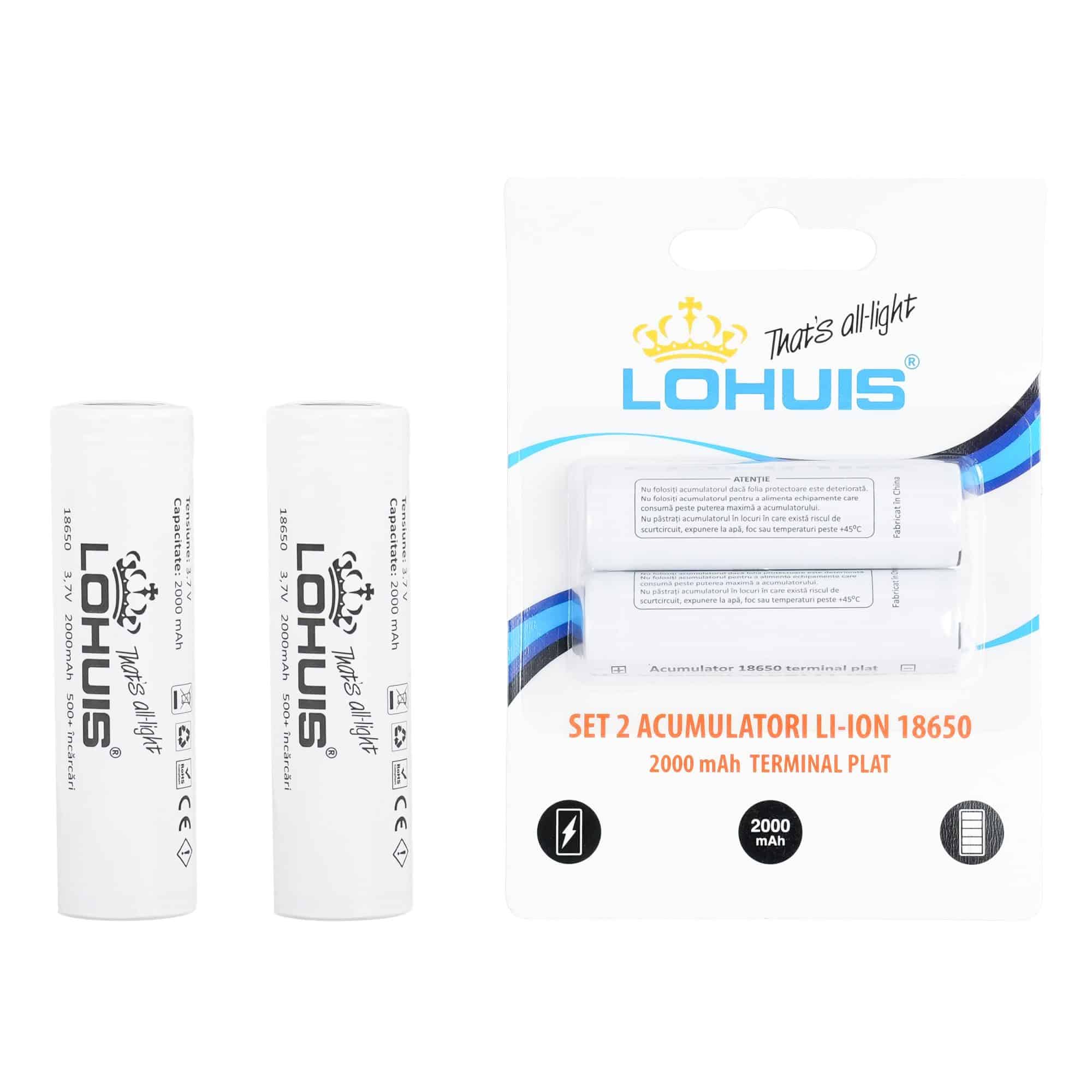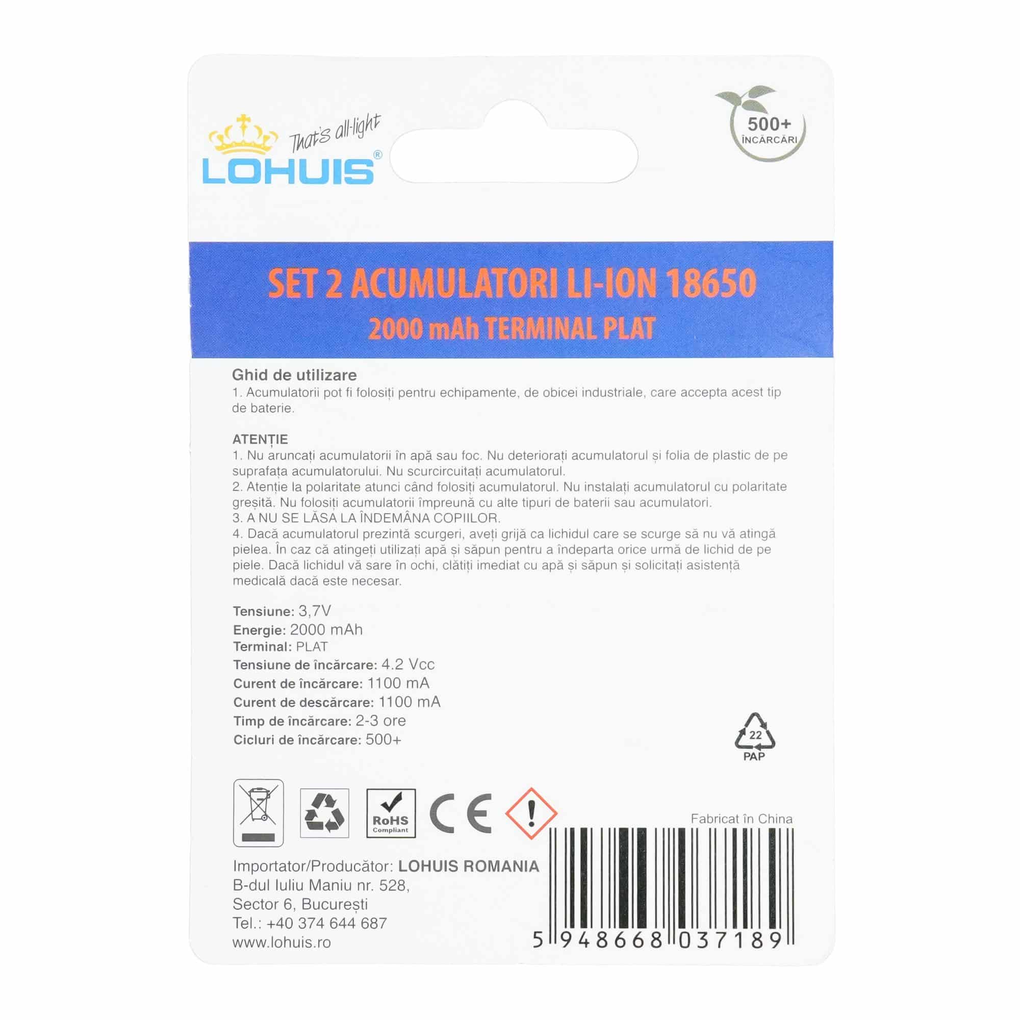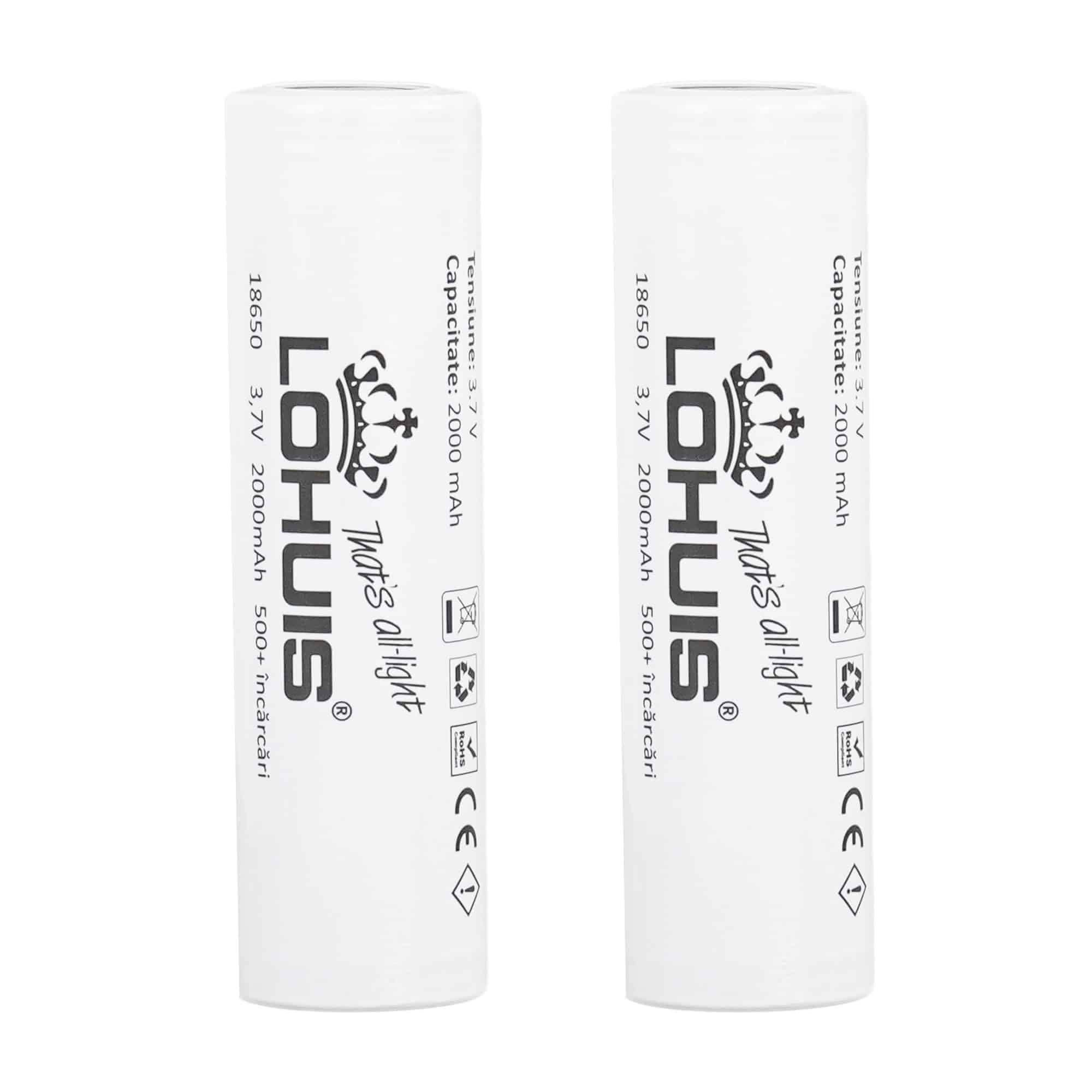 Set 2 acumulatori Li-Ion 18650, 2000 mAh, terminal plat