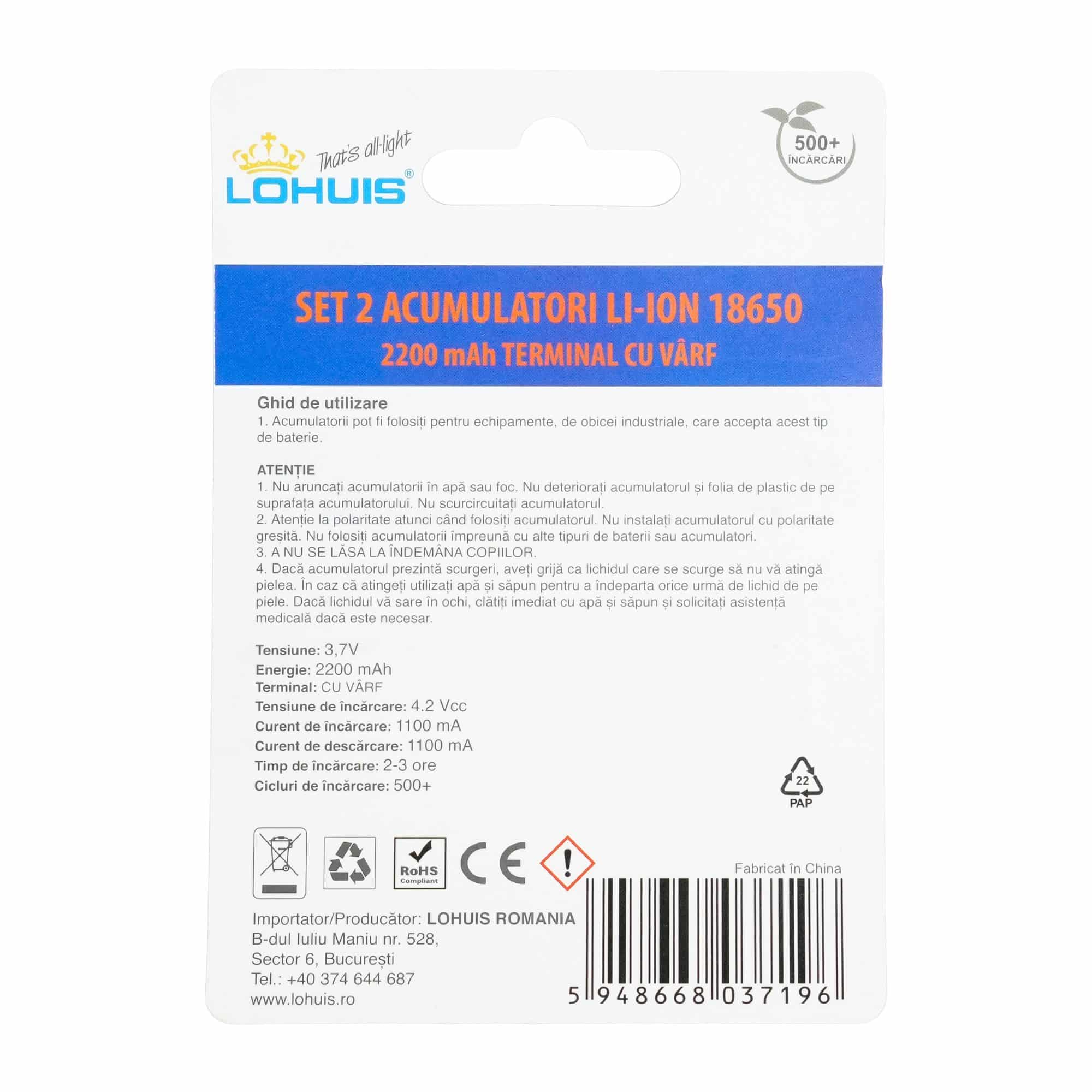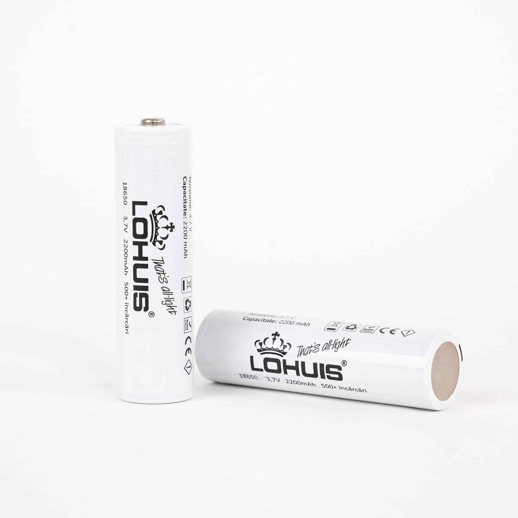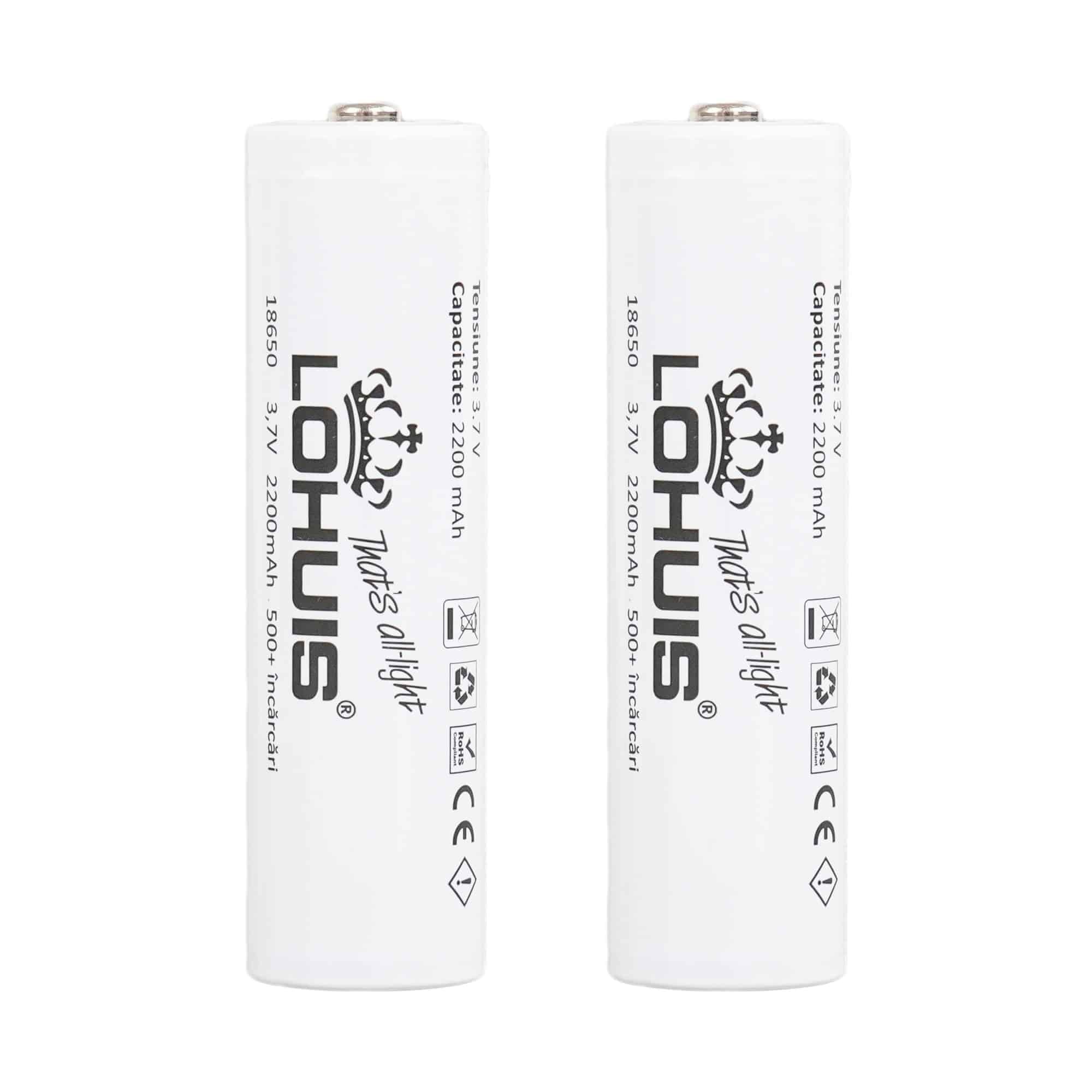 Set 2 acumulatori Li-Ion 18650, 2200 mAh, terminal cu vârf